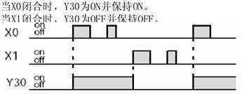 當(dāng)觸發(fā)器閉合時(shí),執(zhí)行SET(置位)指令。即使觸發(fā)電器狀態(tài)改變,輸出線圈也會為ON并保持ON狀態(tài)。