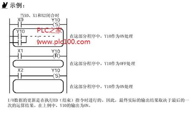 當(dāng)使用SET(置位)和RST(復(fù)位)指令時(shí),輸出的值會隨運(yùn)算過程的期間的各步而改變。