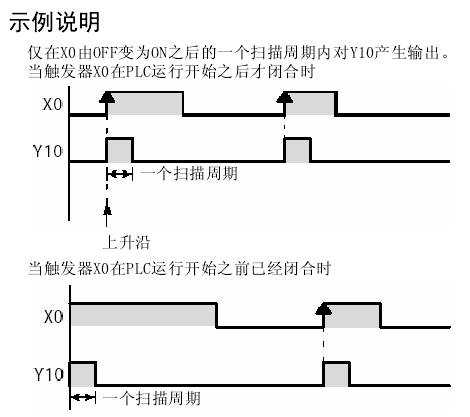 當(dāng)觸發(fā)器(執(zhí)行條件)在PLC運行開始之前已閉合時,在第一個掃描周期產(chǎn)生輸出(微分輸出)。