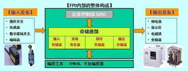 FP0 PLC內(nèi)部的整體構(gòu)成如下圖所示,各部分的功能為: