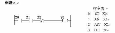 當外接輸入信號X0、X1均接通且X2斷開時,Y0受激。在程序中AN、AN/指令可連續(xù)使用多次。