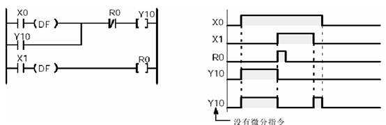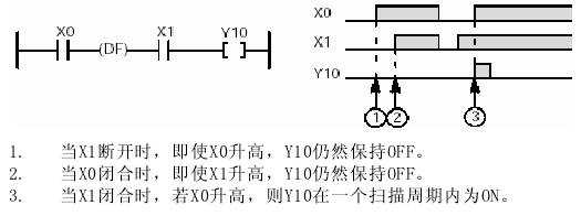 當觸發(fā)信號狀態(tài)從OFF狀態(tài)到ON狀態(tài)變化時,DF指令才執(zhí)行并且輸出僅接通一個掃描周期。
