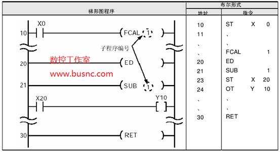 執(zhí)行指定的子程序。當(dāng)返回到主程序時(shí),子程序中所有的輸出將被置為OFF。