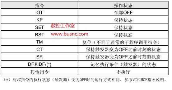 如果FCAL指令的觸發(fā)器為OFF,則不執(zhí)行子程序。當(dāng)FCAL指令的觸發(fā)器處于OFF狀態(tài)時(shí),子程序中的指 令的運(yùn)行狀態(tài)如下。