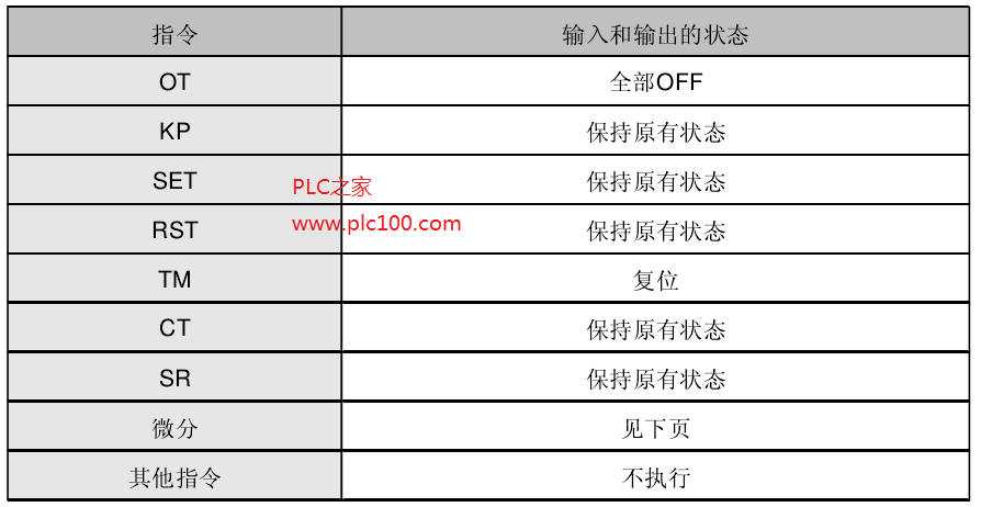 當(dāng)執(zhí)行條件為OFF狀態(tài)時(shí),各指令的操作如下: