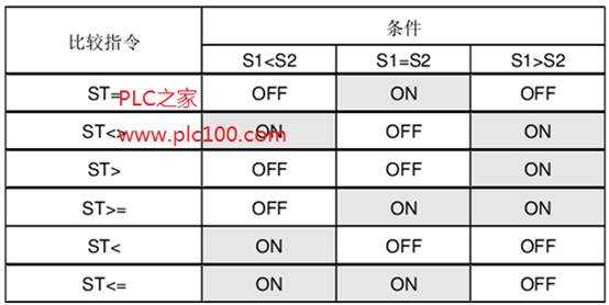 當(dāng)比較結(jié)果為某一指定狀態(tài)(=、<、>等)時(shí),ST指令啟動(dòng)連接觸點(diǎn)的邏輯運(yùn)算。