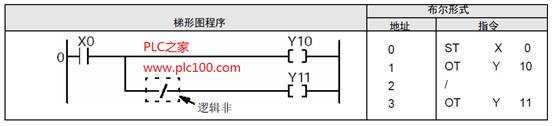 邏輯取反指令"/"的程序示例如圖2所示,