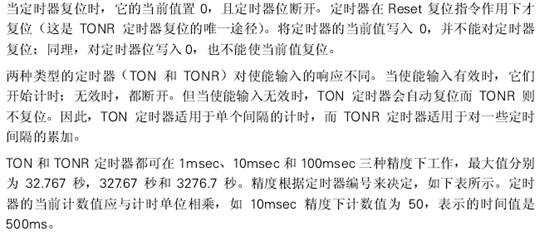 在程序中用定時(shí)器來(lái)控制時(shí)間。SIMATIC S7-200系列可編程控制器設(shè)置了兩種類型的定時(shí)器:接通延遲(On-Delay)定時(shí)器(TON),保持接通延遲”(Retentive On-Delay)定時(shí)器(TONR)。它們都可工作在三種精度下,即1 msec. 10msec和100msec。