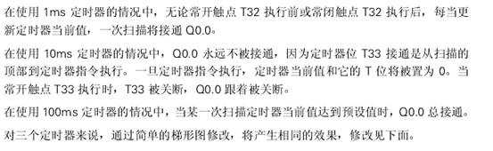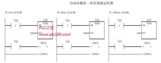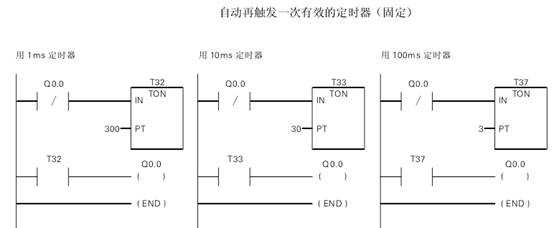 用常閉觸點(diǎn)Q0.0代替定時(shí)器位(T位)作為定時(shí)器的使能輸入,在一次掃描后定時(shí)器達(dá)到預(yù)定值時(shí)可保證接通輸出Q0.0.