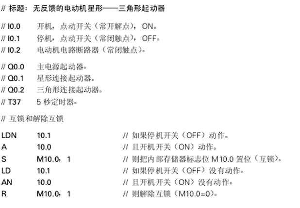 只有當電路斷路器觸點(10.2)和關機開關觸點(10.1)都沒有打開,且三角形起動器(Q0.2)沒有工作時,M11.0才有可能被置位。