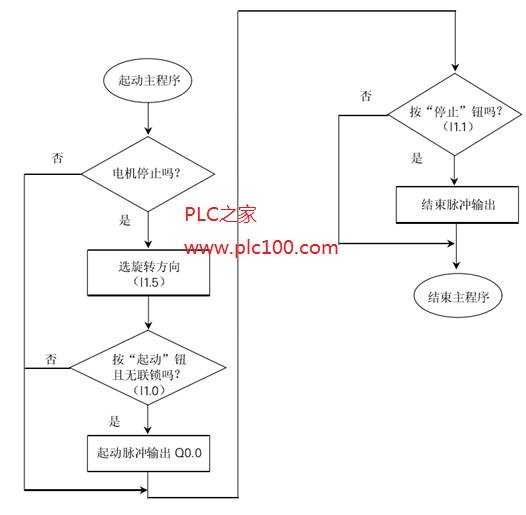 在完整的脈沖序列輸出后,中斷程序0將標(biāo)志M0.1復(fù)位(M0.1=0),從而使電機能夠重新起動。為更清晰起見,這部分程序小包括在本例程序流程圖中。