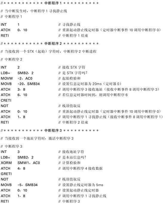 通過(guò)自山端模式(Freeport Mode),S7-212接收來(lái)自主設(shè)置的信息,以及向主設(shè)備發(fā)送信息。由幾個(gè)中斷程序完成從設(shè)備的數(shù)據(jù)處理。