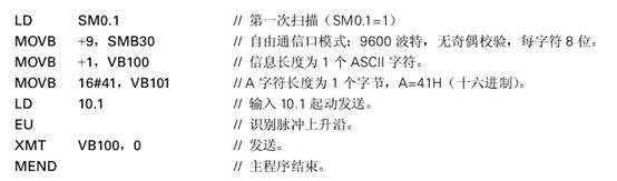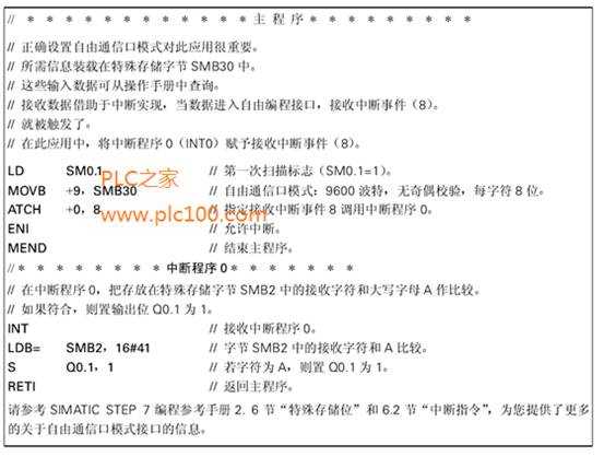該程序描述數(shù)據(jù)接收,條形碼閱讀器通過接日把讀到的數(shù)據(jù)用自山通信日模式發(fā)給SIMATIC S7-200。為簡化此例,窗口下的終端程序可代替條形碼閱讀器作為發(fā)送器連接。