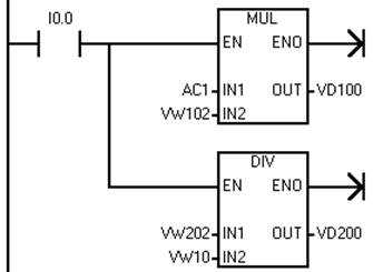 S7-200系列PLC乘除法指令應(yīng)用舉例,程序如圖1所示。