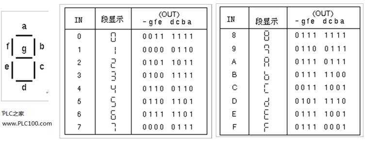 七段譯碼指令SEG將輸入字節(jié)16#0~F轉(zhuǎn)換成七段顯示碼。指令格如表1所示。
