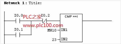 如圖所示,當MW10中的內(nèi)容等于23時,Q0.0的狀態(tài)為“1”,如果MW10的內(nèi)容不等于23,則Q0.0的狀態(tài)為“0”。注意:比較指令的使用接點類似,因此比較指令不能放在邏輯串的最后。如下圖所示: