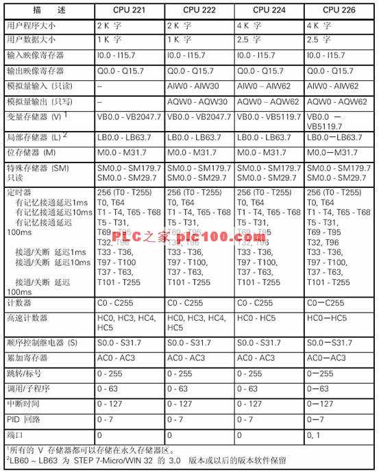 表4-17 S7-200 CPU存儲器范圍和特性表