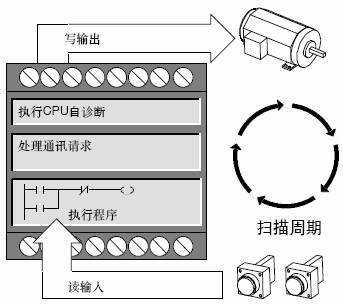 (Ⅴ)寫輸出:在程序結(jié)束時,S7-200將數(shù)據(jù)從輸出映像寄存器中寫入把輸出鎖存器,最后復(fù)制到物理輸出點,驅(qū)動外部負(fù)載。