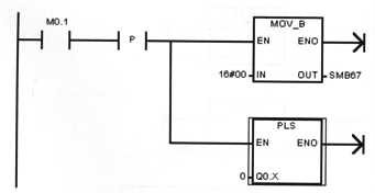 首先,確定使用哪個端口來發(fā)脈沖,如采用Q0.0發(fā)脈沖,則它的控制字為SMB67,脈沖同期為SMW68,脈 沖個數(shù)存放在SMD72中,